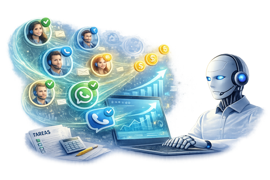 Responde a clientes, agenda citas y convierte conversaciones en oportunidades automáticamente.